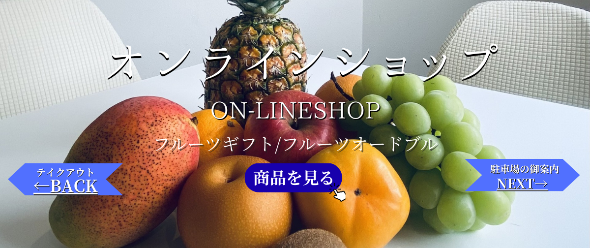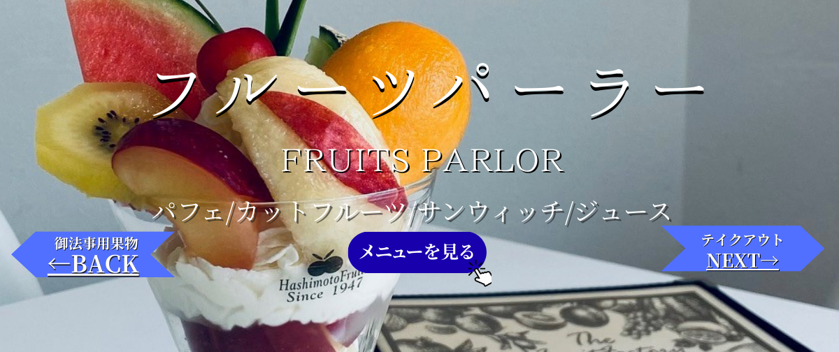 店舗内に併設するフルーツパーラーでは旬の果物を使った