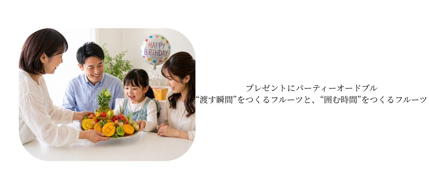 プレゼントにパーティーオードブル|“渡す瞬間”をつくるフルーツと、“囲む時間”をつくるフルーツ