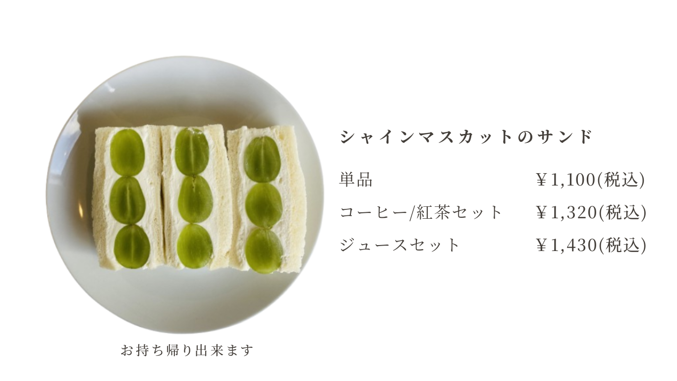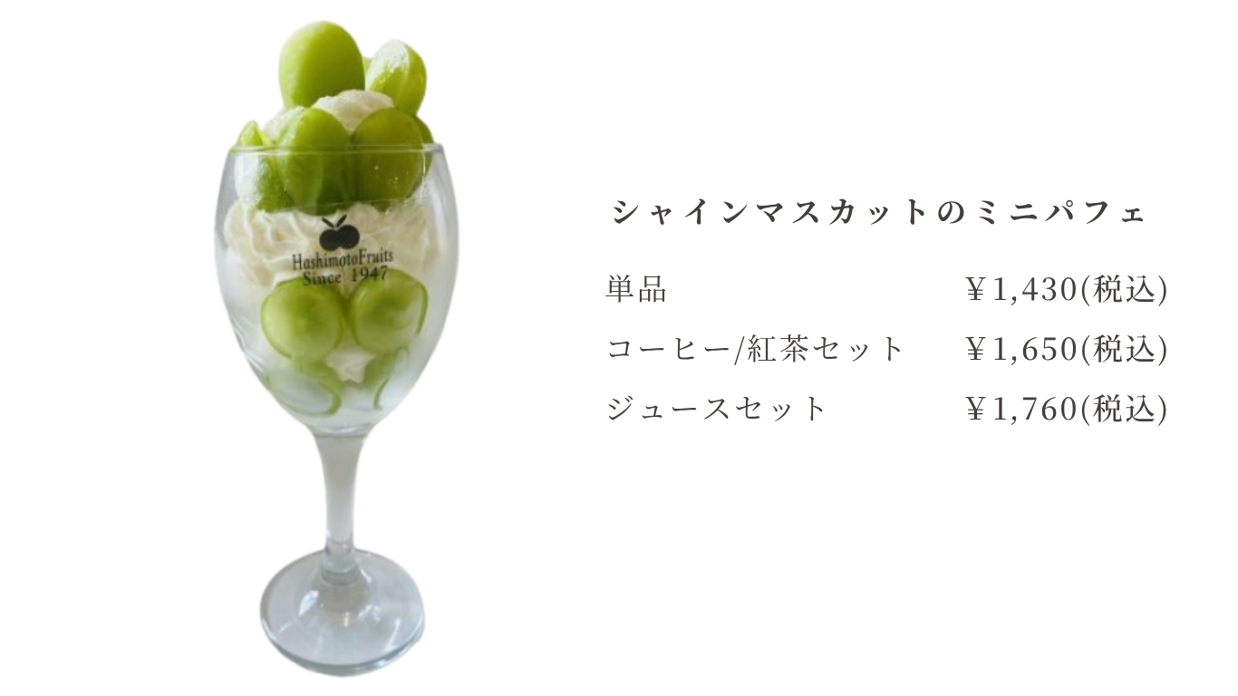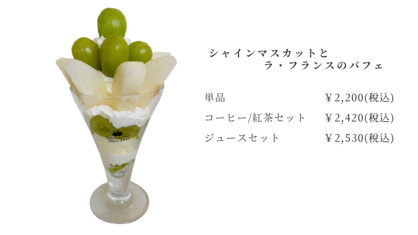 パフェやフルーツサンド、ジュースがお楽しみ頂けます