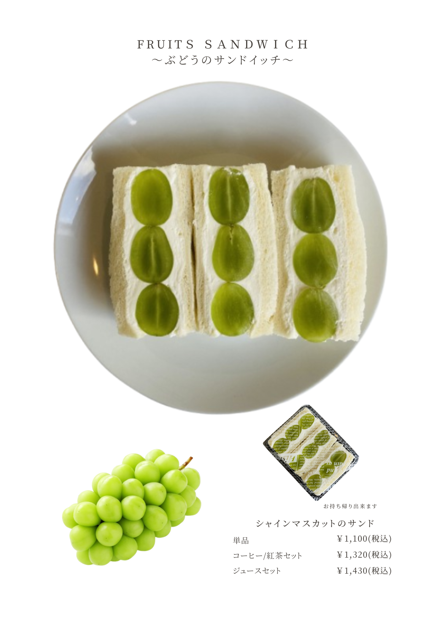 パフェやフルーツサンド、ジュースがお楽しみ頂けます