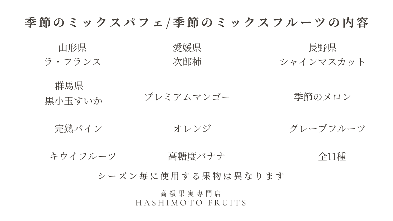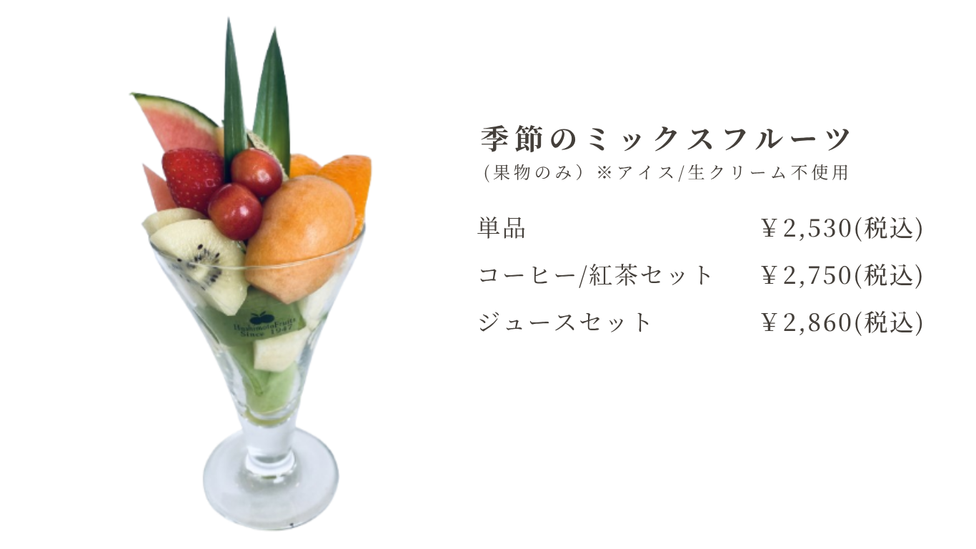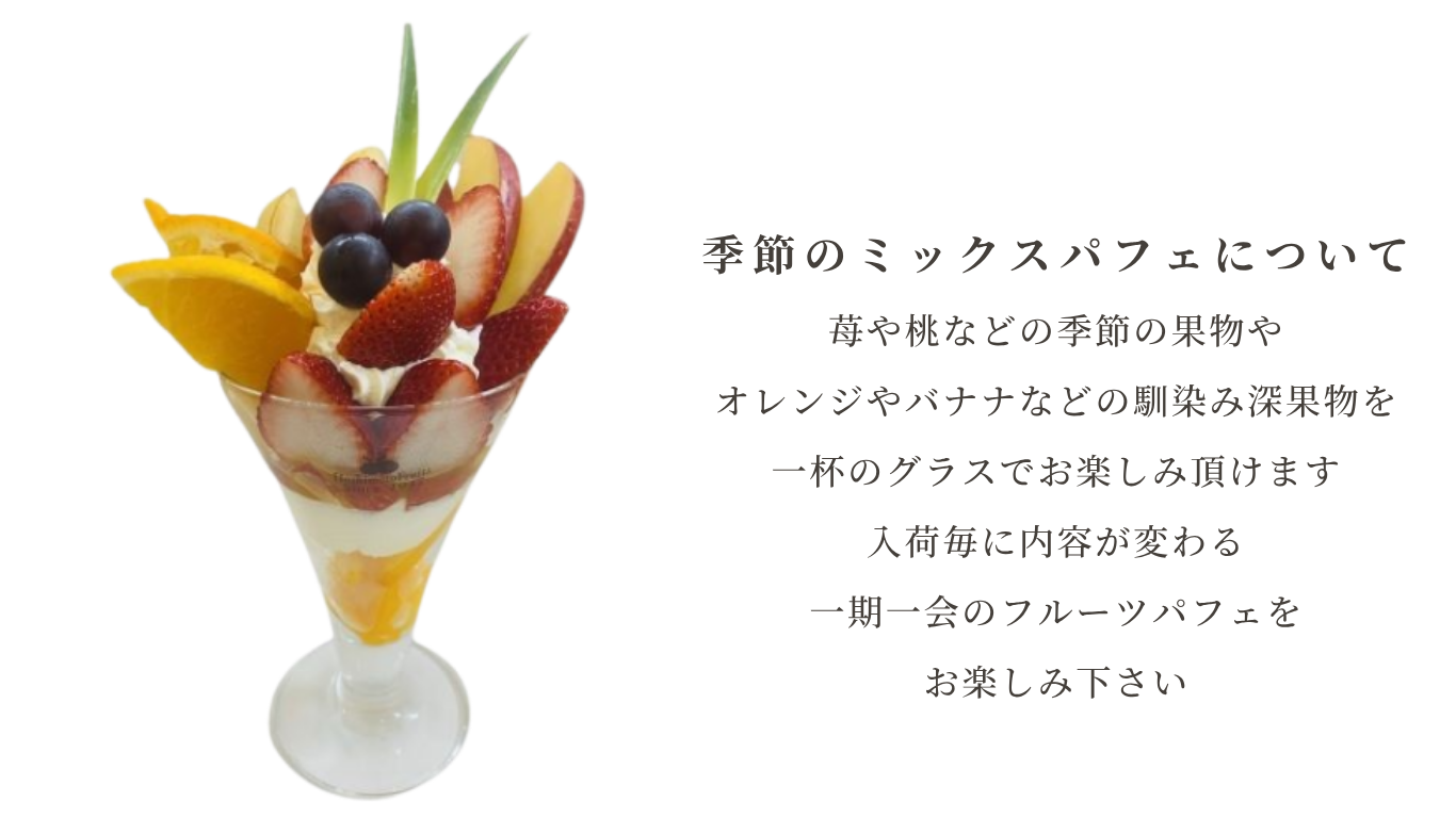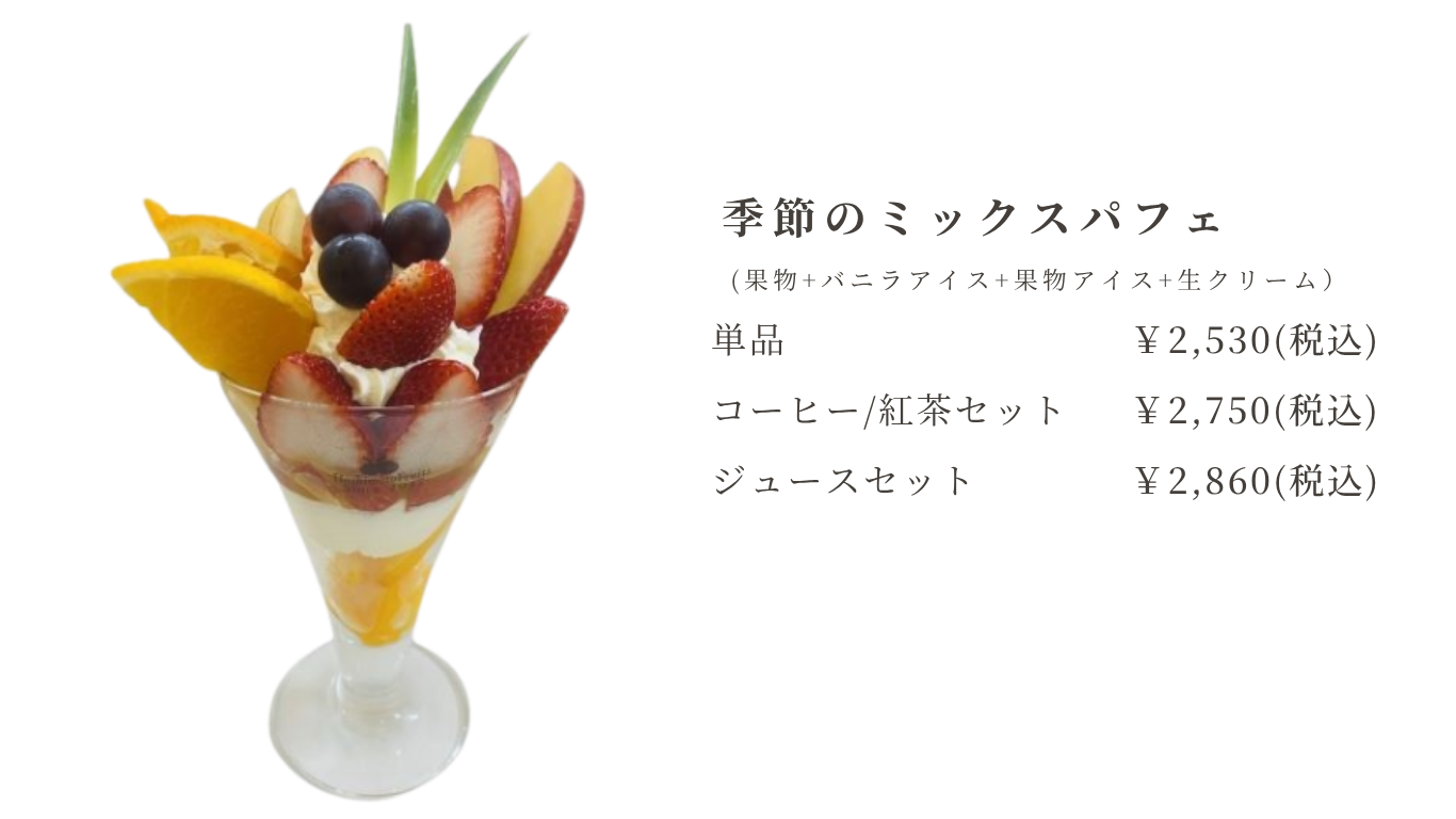 パフェやフルーツサンド、ジュースがお楽しみ頂けます