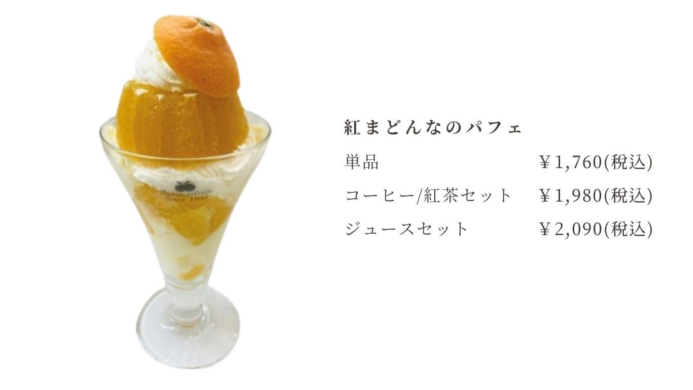 パフェやフルーツサンド、ジュースがお楽しみ頂けます