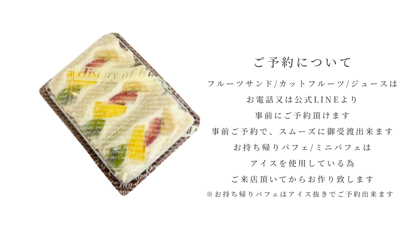 パフェやフルーツサンド、ジュースがお楽しみ頂けます