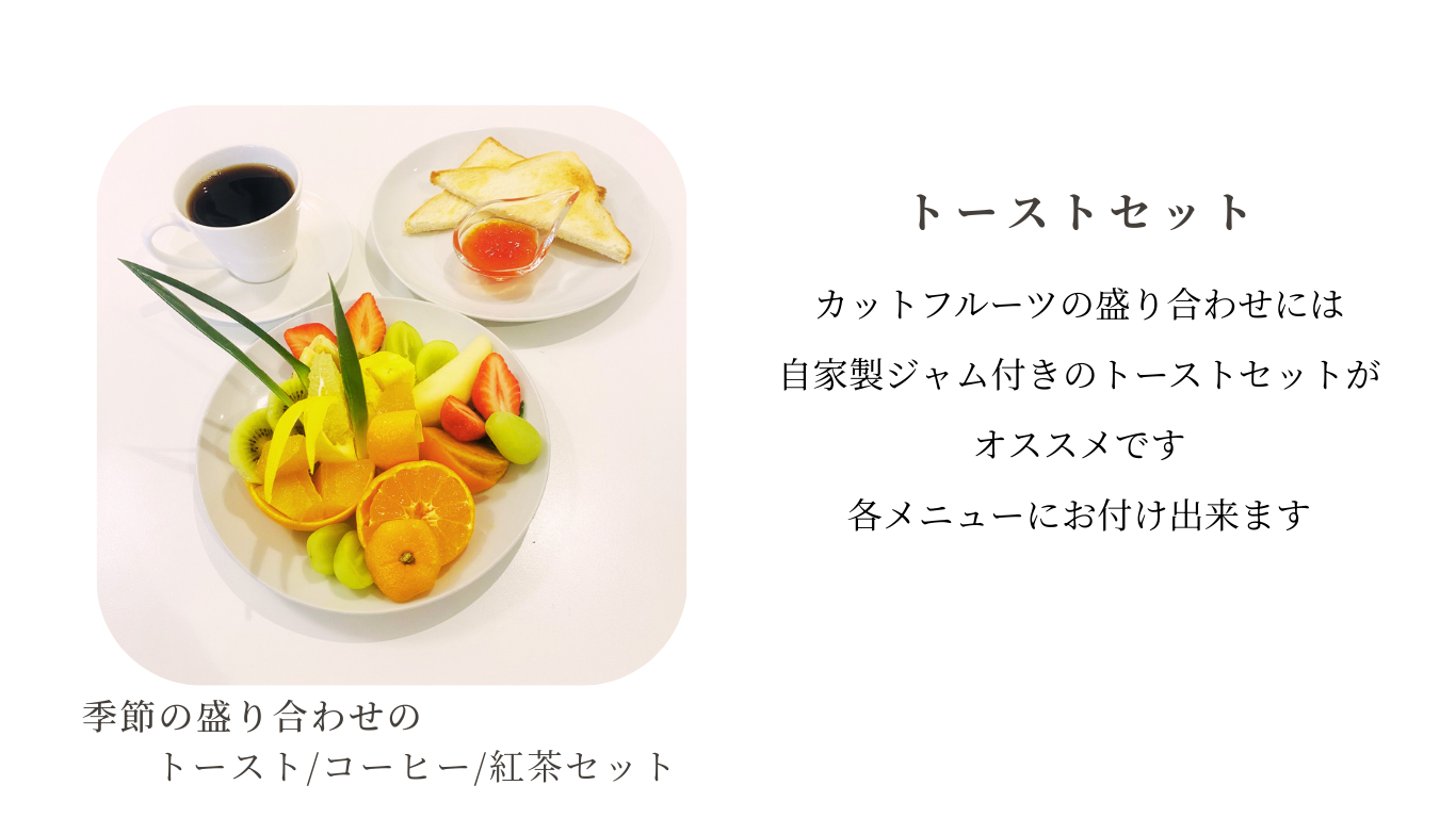 パフェやフルーツサンド、ジュースがお楽しみ頂けます