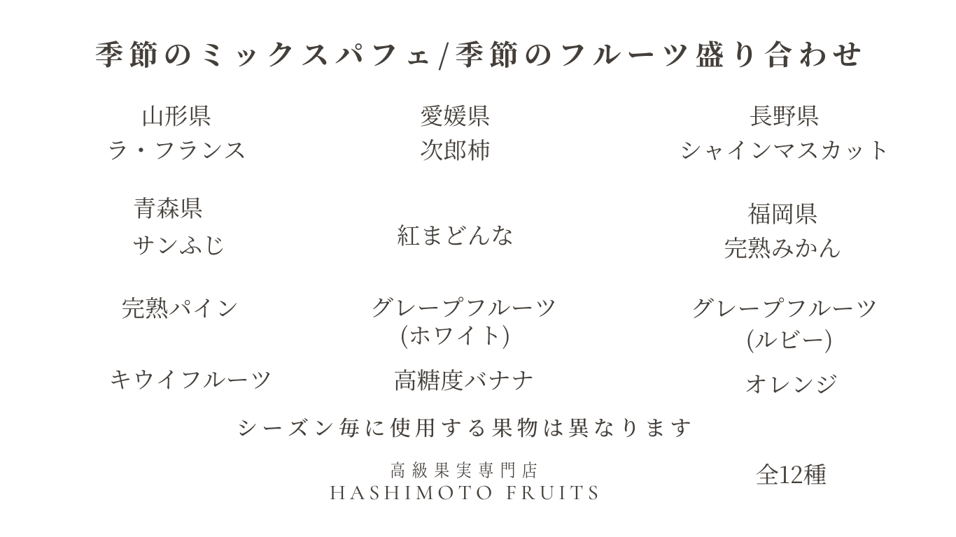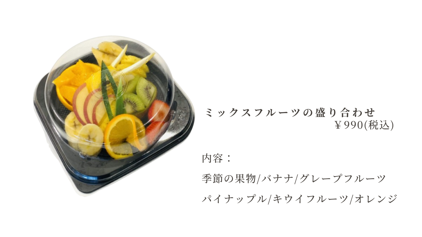 パフェやフルーツサンド、ジュースがお楽しみ頂けます