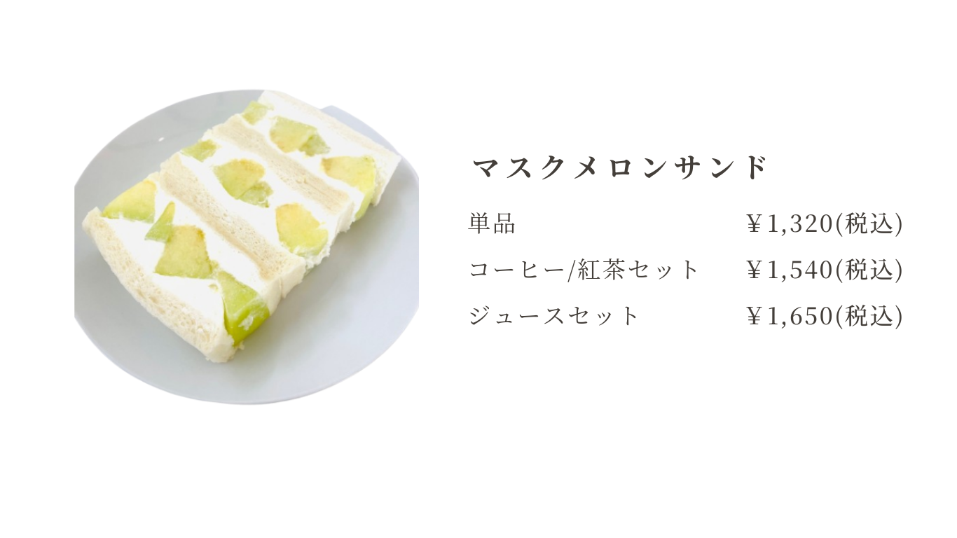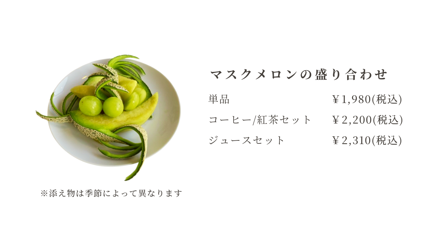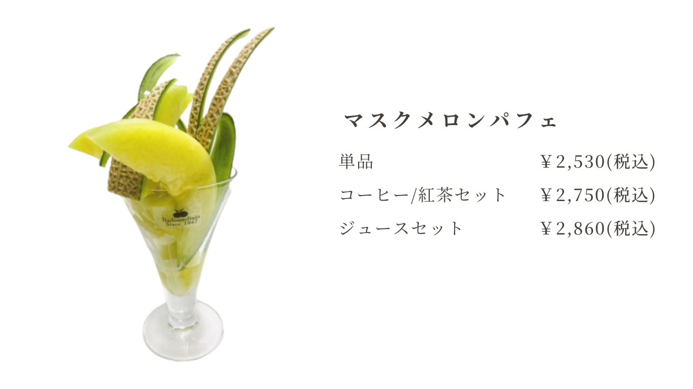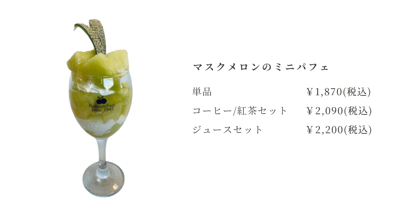 パフェやフルーツサンド、ジュースがお楽しみ頂けます