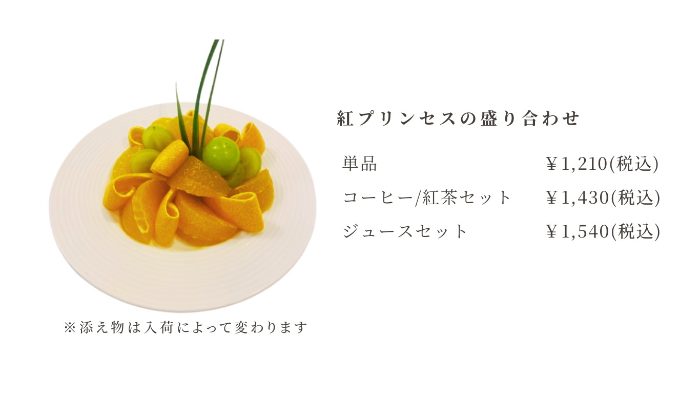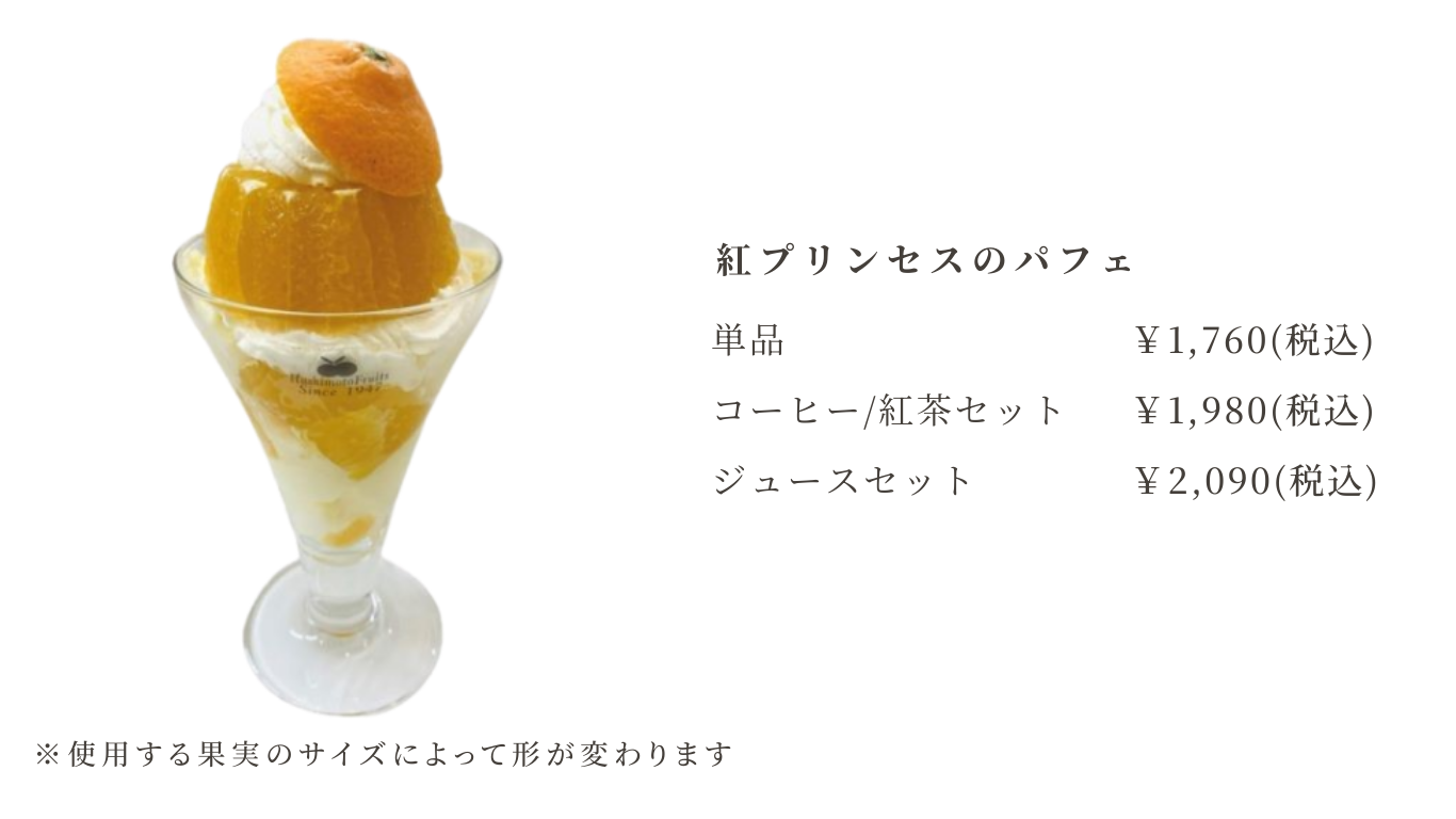 パフェやフルーツサンド、ジュースがお楽しみ頂けます