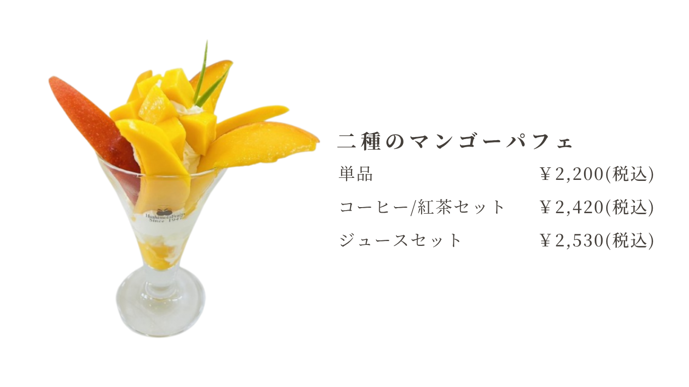 二種のマンゴーパフェ(宮崎マンゴー&プレミアムマンゴー)